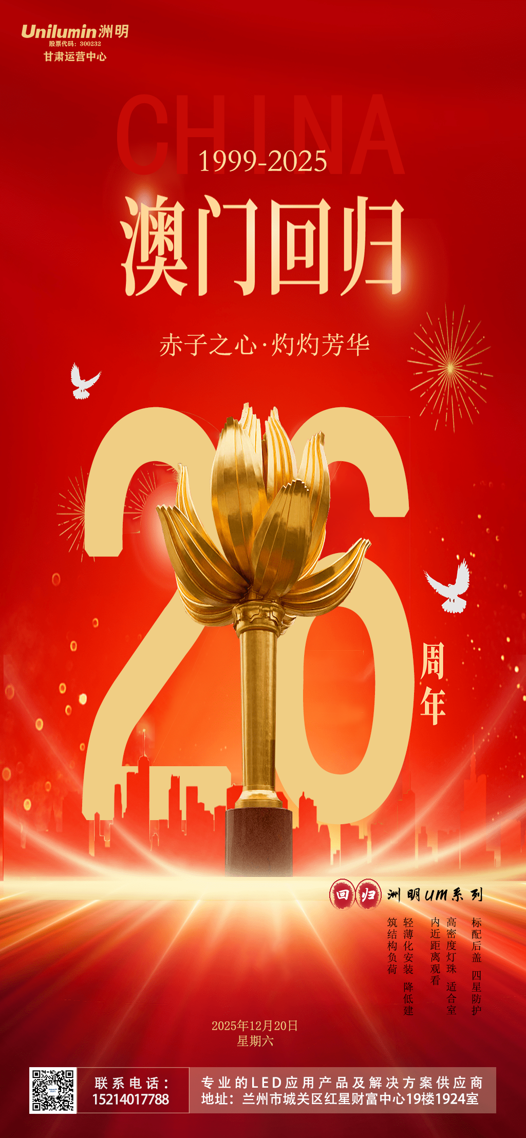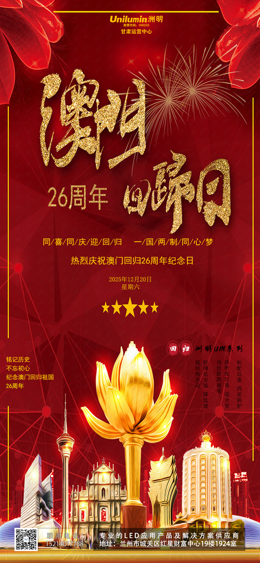 庆祝澳门回归26周年,共筑祖国辉煌。愿繁荣昌盛,国泰民安!